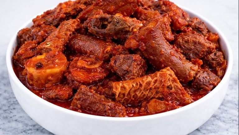 Hearty servings of jollof, fried rice, and buka stew, ready for your guests.