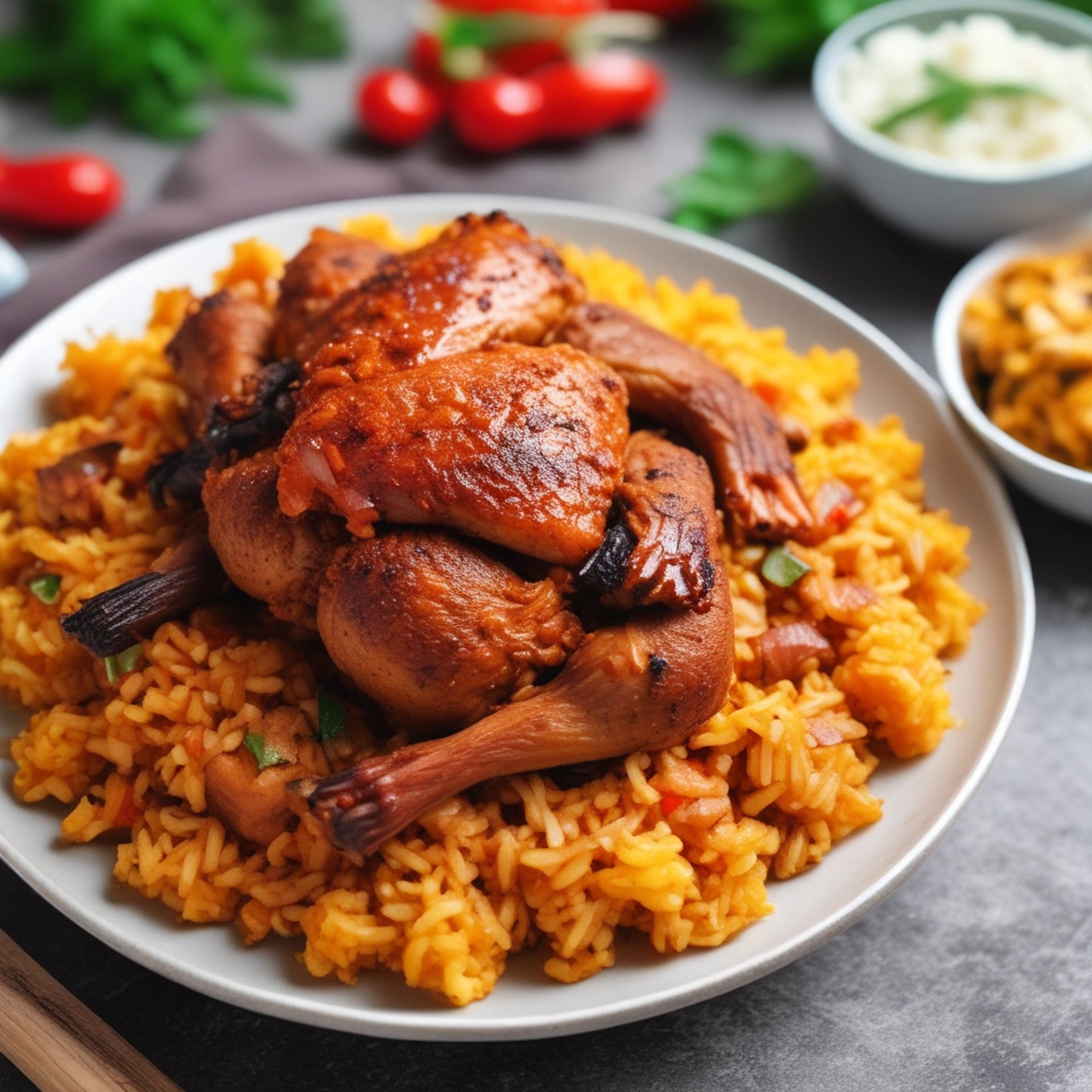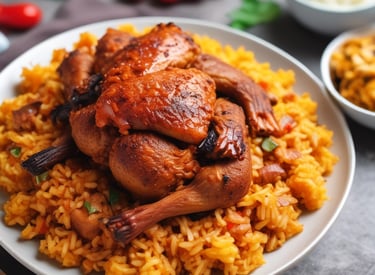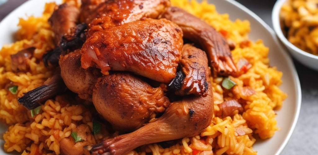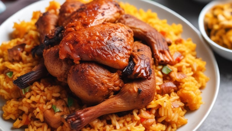 Hearty servings of jollof, fried rice, and suya, ready for your guests.